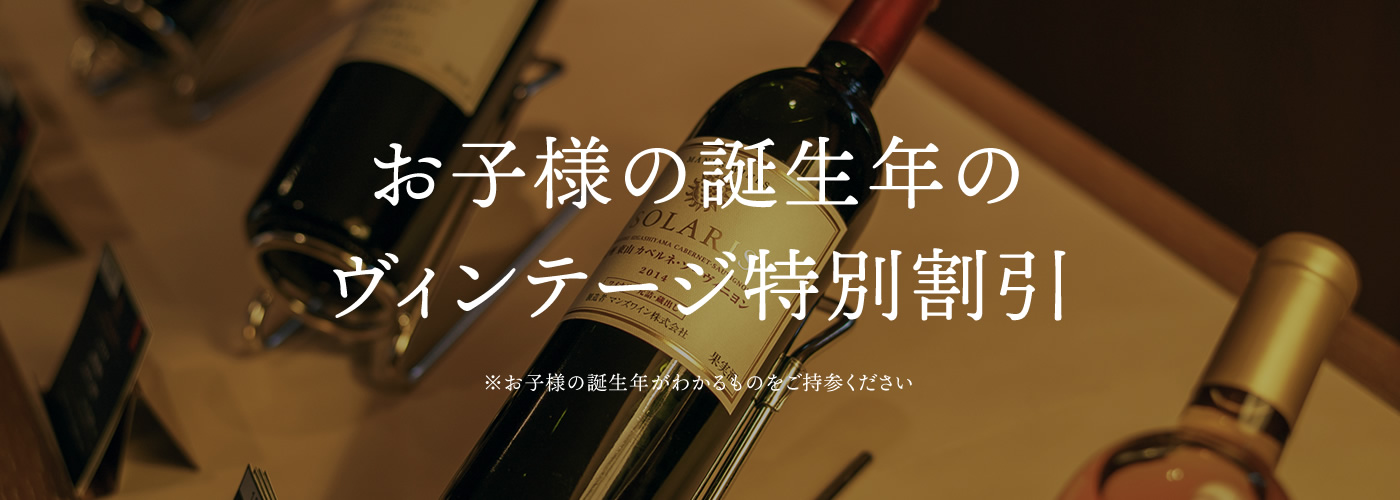 ゴールデンウィーク期間限定でお子様の誕生年のヴィンテージが刻まれたワインをご購入いただく際に10%OFFにてお買い求めいただけます。
